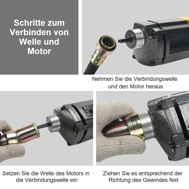 【Große Entfernung 】Mit Hilfe eines 1,5 Meter langen, superlangen Schlauchs können Sie auch große Flächen schnell und einfach verdichten. Dieser professionelle Betonvibrator ist ideal für die meisten Baustellen.