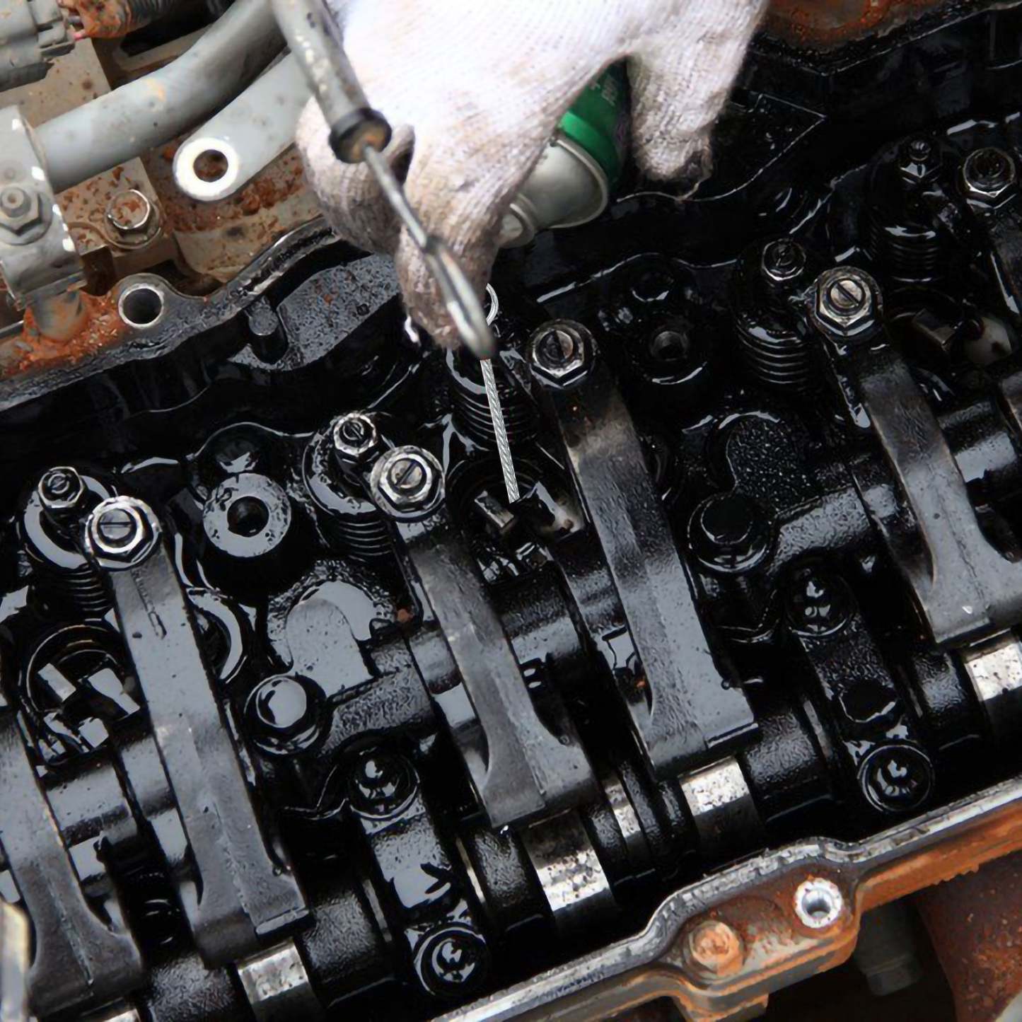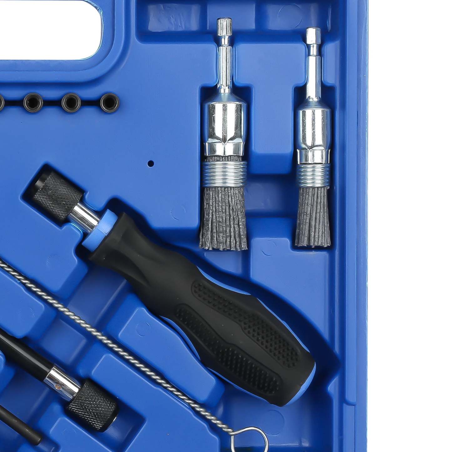 Das Injektor-Reinigungswerkzeug-Set hilft effektiv, die Verbrennungsrückstände an Schächten für das Injektorgehäuse zu entfernen. Damit wird er verhindert, dass das Verbrennungsgas aufgrund einer unsachgemäßen Installation des Injektors entweicht.