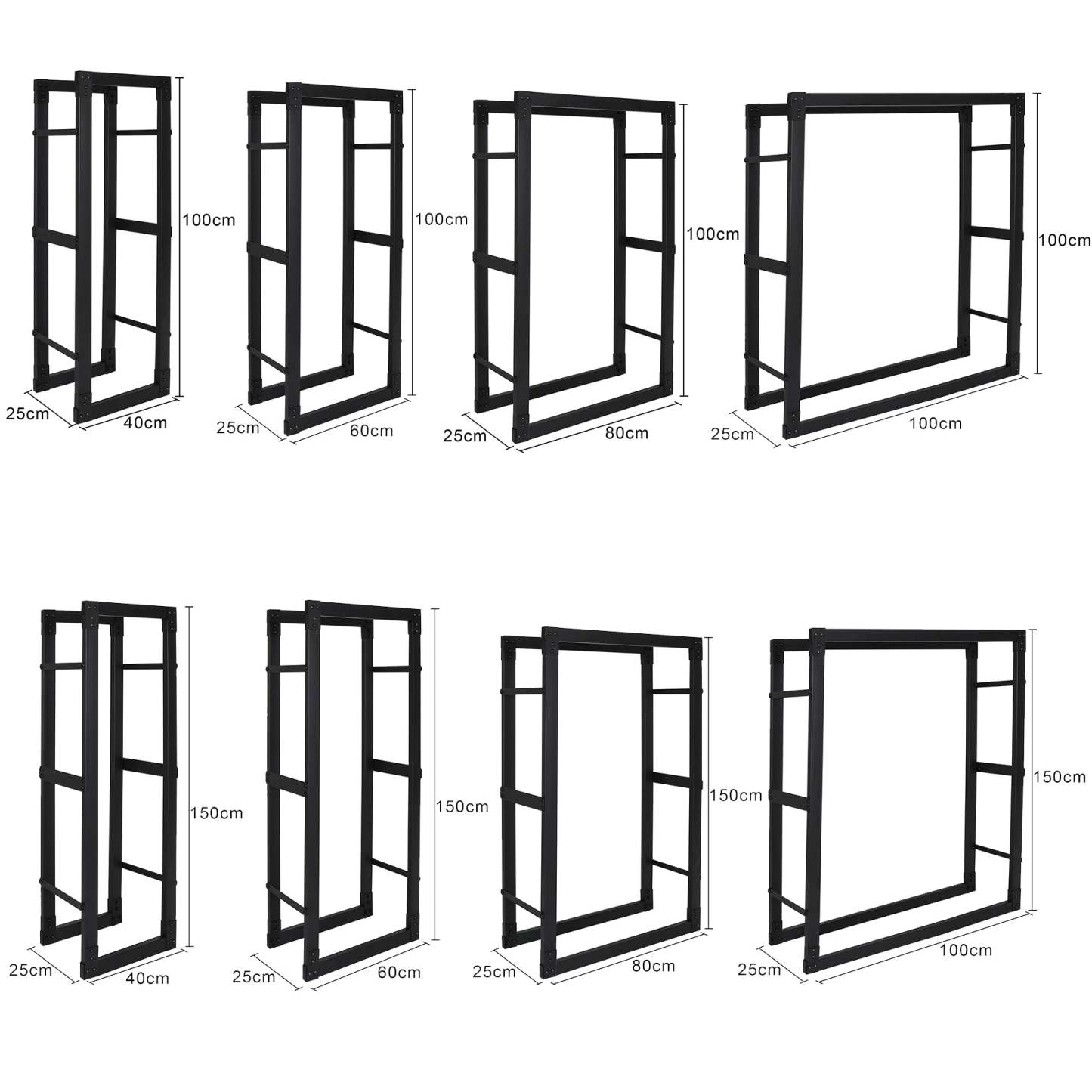 8 verschiedene Größen zur Auswahl, Es fügt sich optimal in Ihrem Wohnraum ein und bietet genügend Raum für einen ausreichenden Vorrat an Brennholz in Ihrem Haus. Der Kaminholzständer ist im ganzen Haus, Wintergarten und auch im Außenbereich einsetzbar.