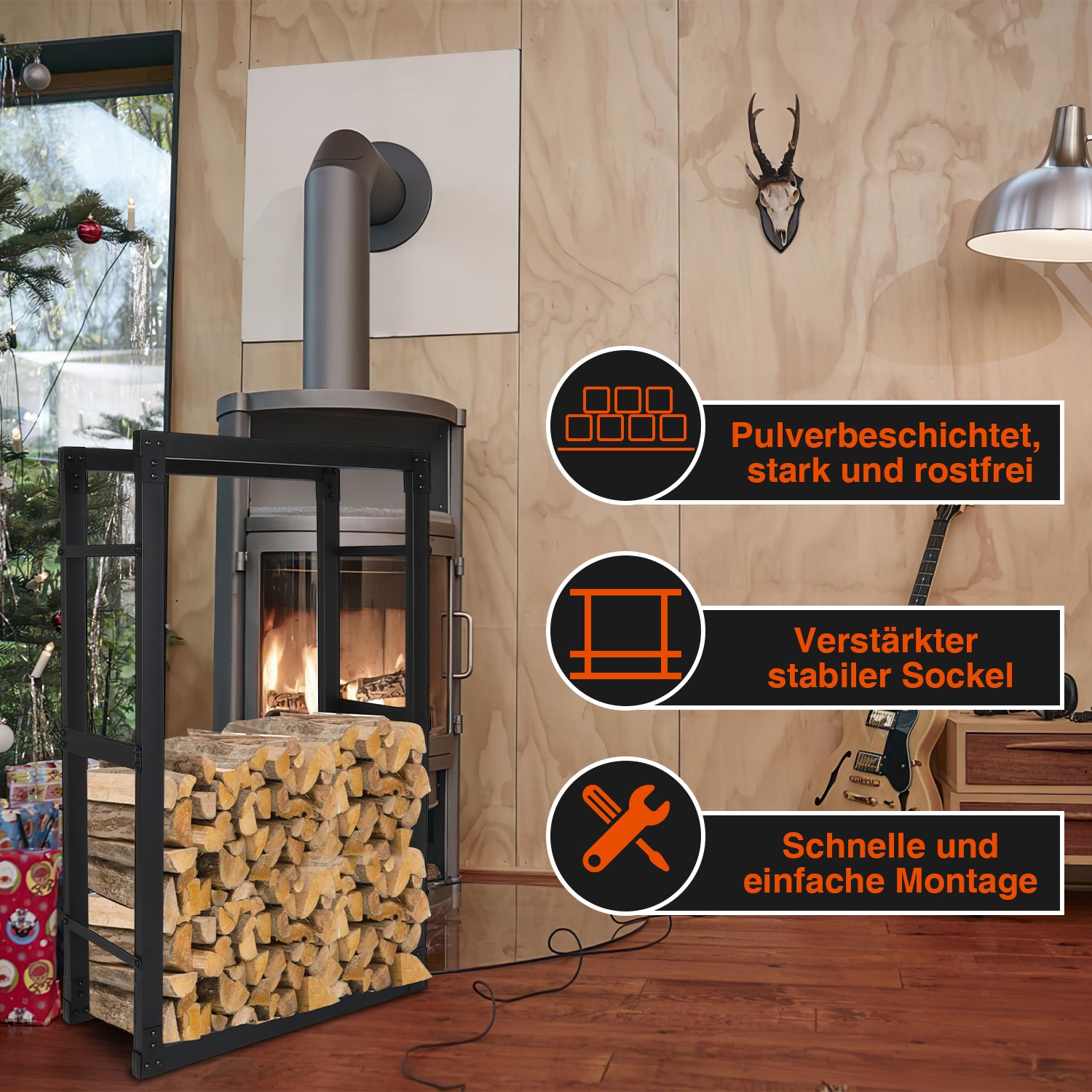 Für den Innen- sowie den Außenbereich verwendbar,sie können Platzieren Sie den Feuerholzhalter als dekoratives Einrichtungselement neben Ofen oder Kamin oder stellen Sie ihn in Garage oder Keller ab. Auch draußen kann die Kaminholzablage in geschützten Ecken aufgestellt werden.