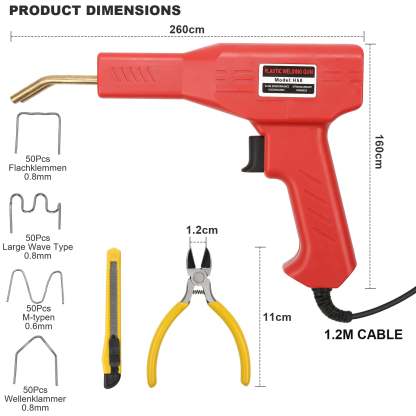 Breiter Anwendungsbereich: Das Kunststoffschweißgerät-Reparaturset eignet sich nicht nur für Stoßfänger, Armaturenbrett, Lampenfassungen, Kühler und andere Kunststoffteile im Auto, sondern auch für die Reparatur von Rissen in den meisten Kunststoffmöbeln des täglichen Lebens.