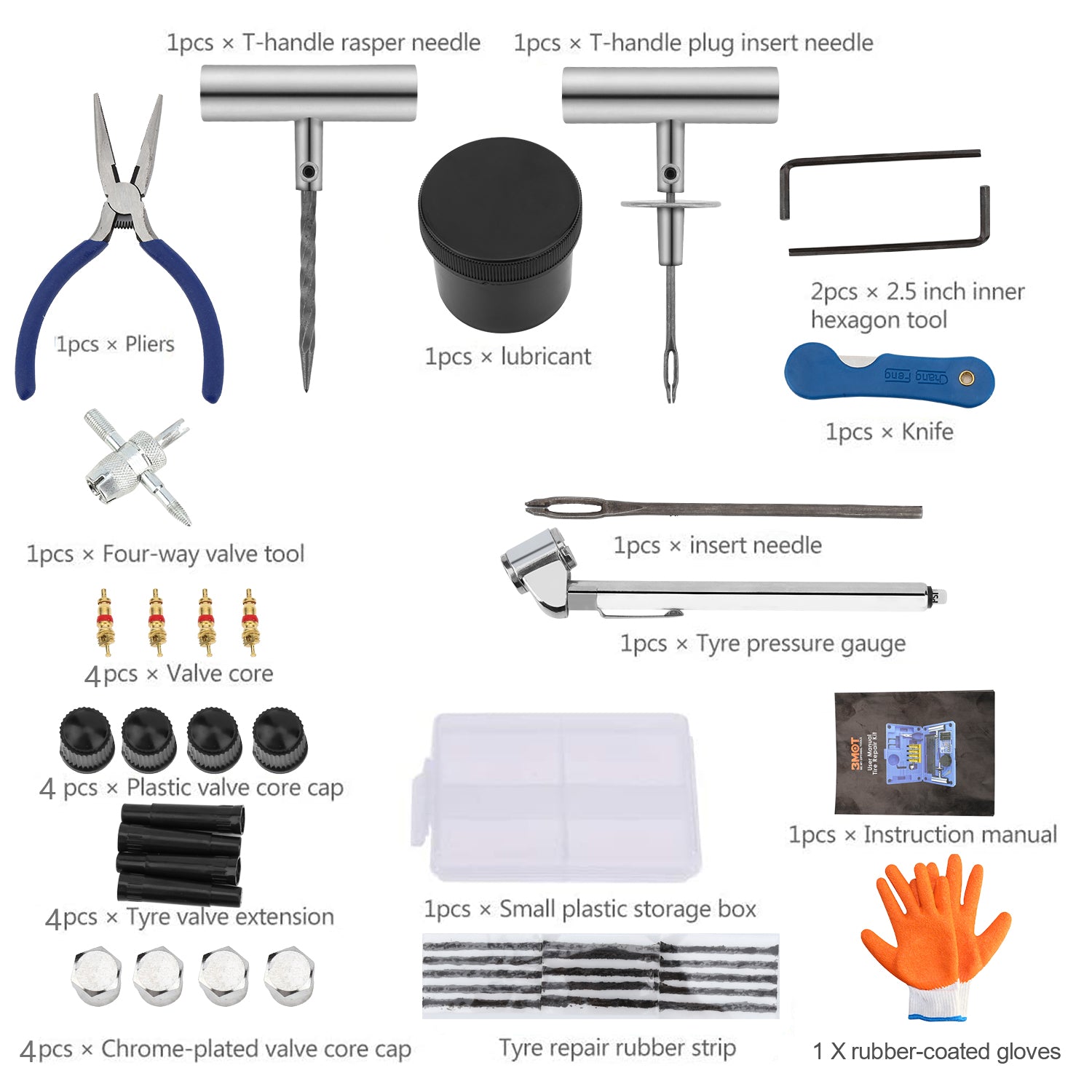 Einfache Reparatur: Reparieren Sie Reifenprobleme schnell und einfach, auch Anfänger können sie problemlos verwenden. Egal, ob Sie zu Hause in der Garage oder in einer Notsituation auf der Straße sind, mit dem Reifenreparatursatz können Sie die Reifenprobleme perfekt beheben.