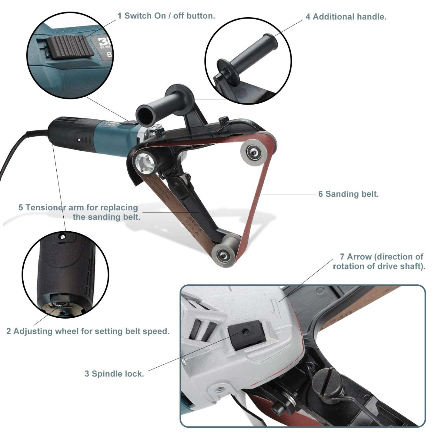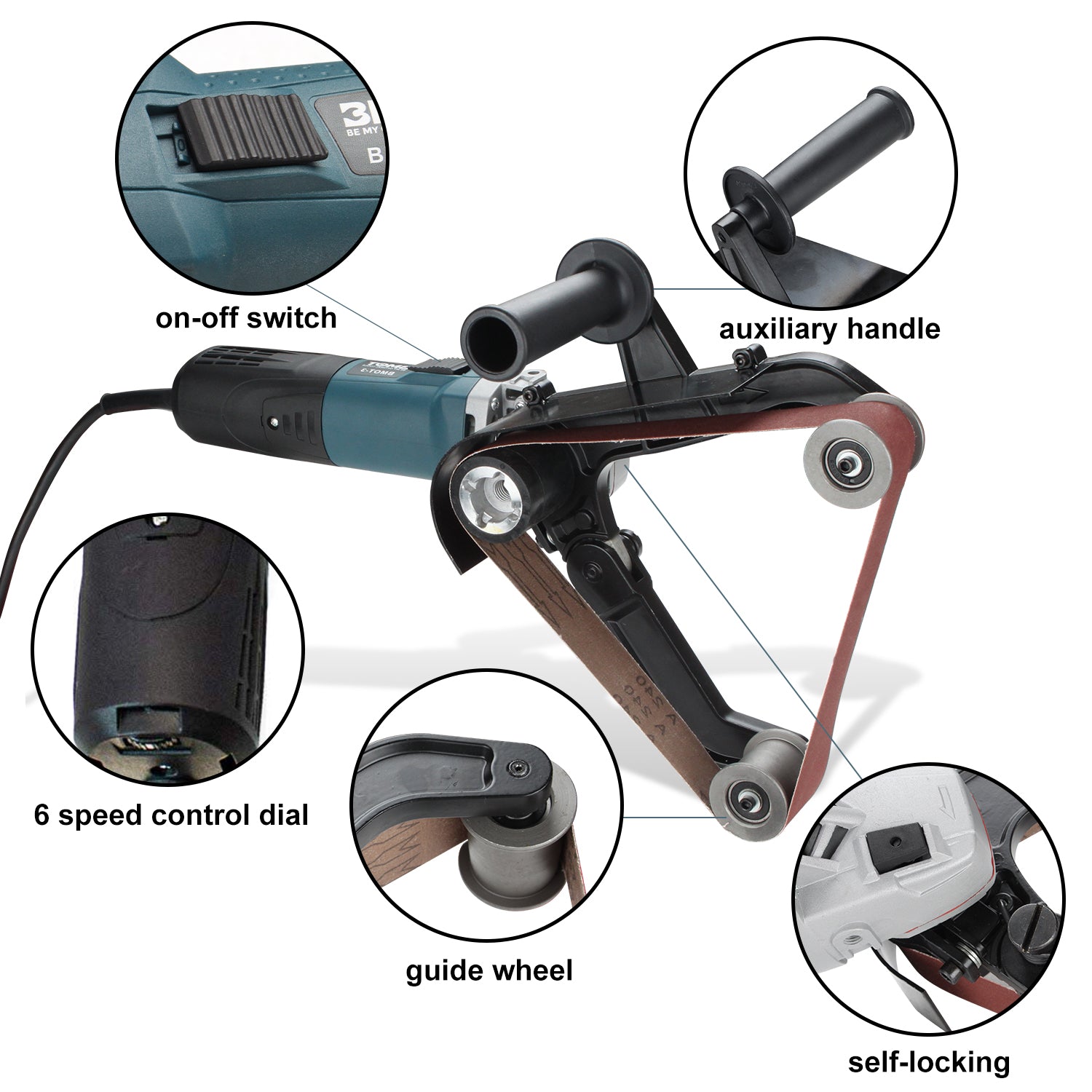 ️【6 Gänge】 Es gibt sechs verschiedene Geschwindigkeiten dieser Rohrbandschleifmaschine, die Sie Ihren Bedürfnissen entsprechend einstellen können.