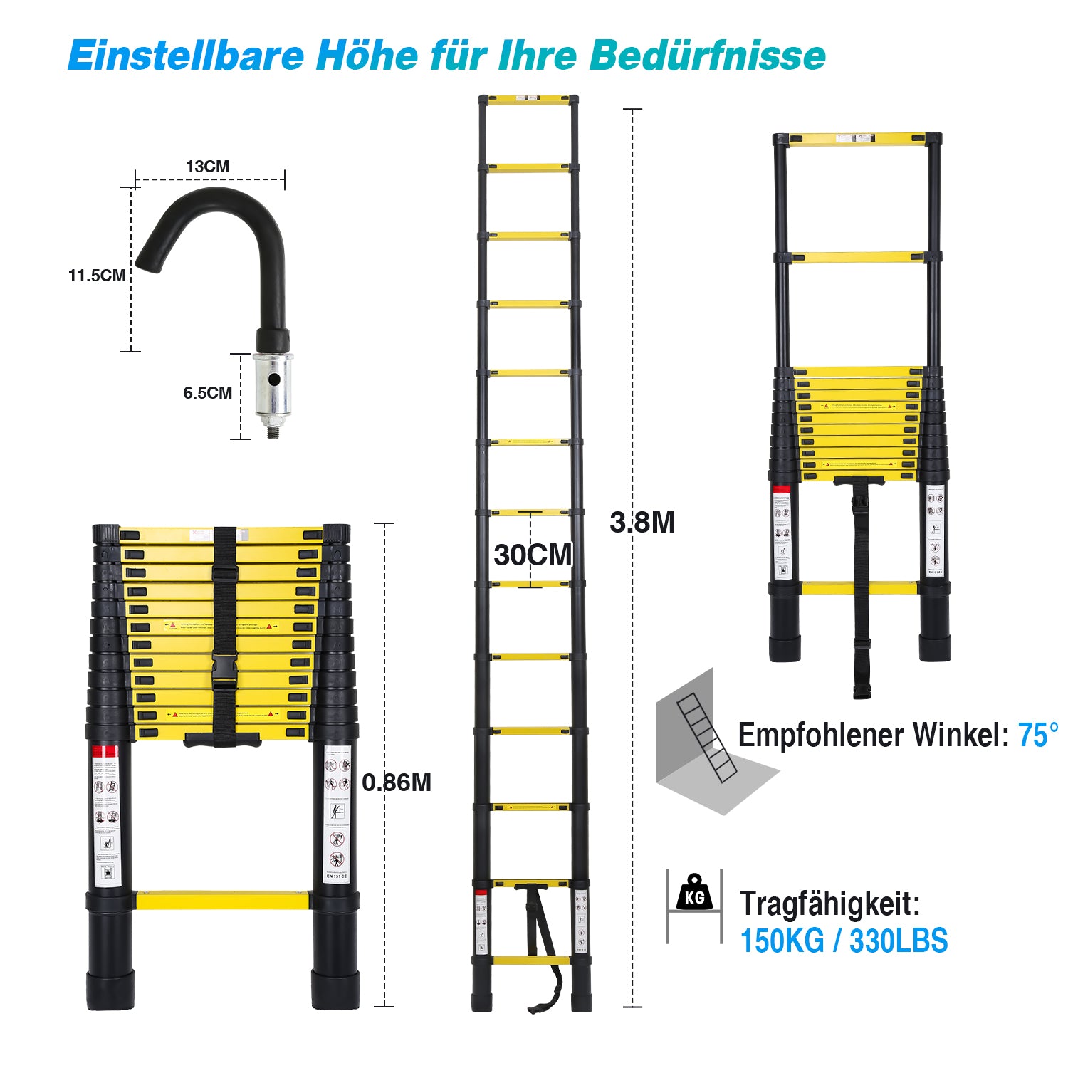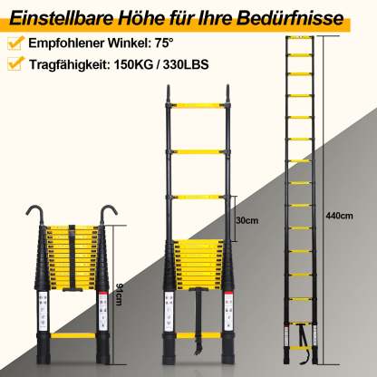 1x Teleskopleiter mit 2 Abnehmbarem Haken