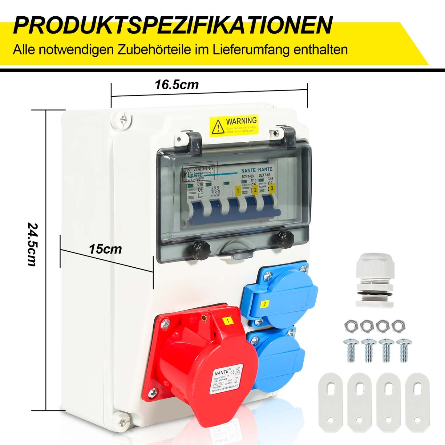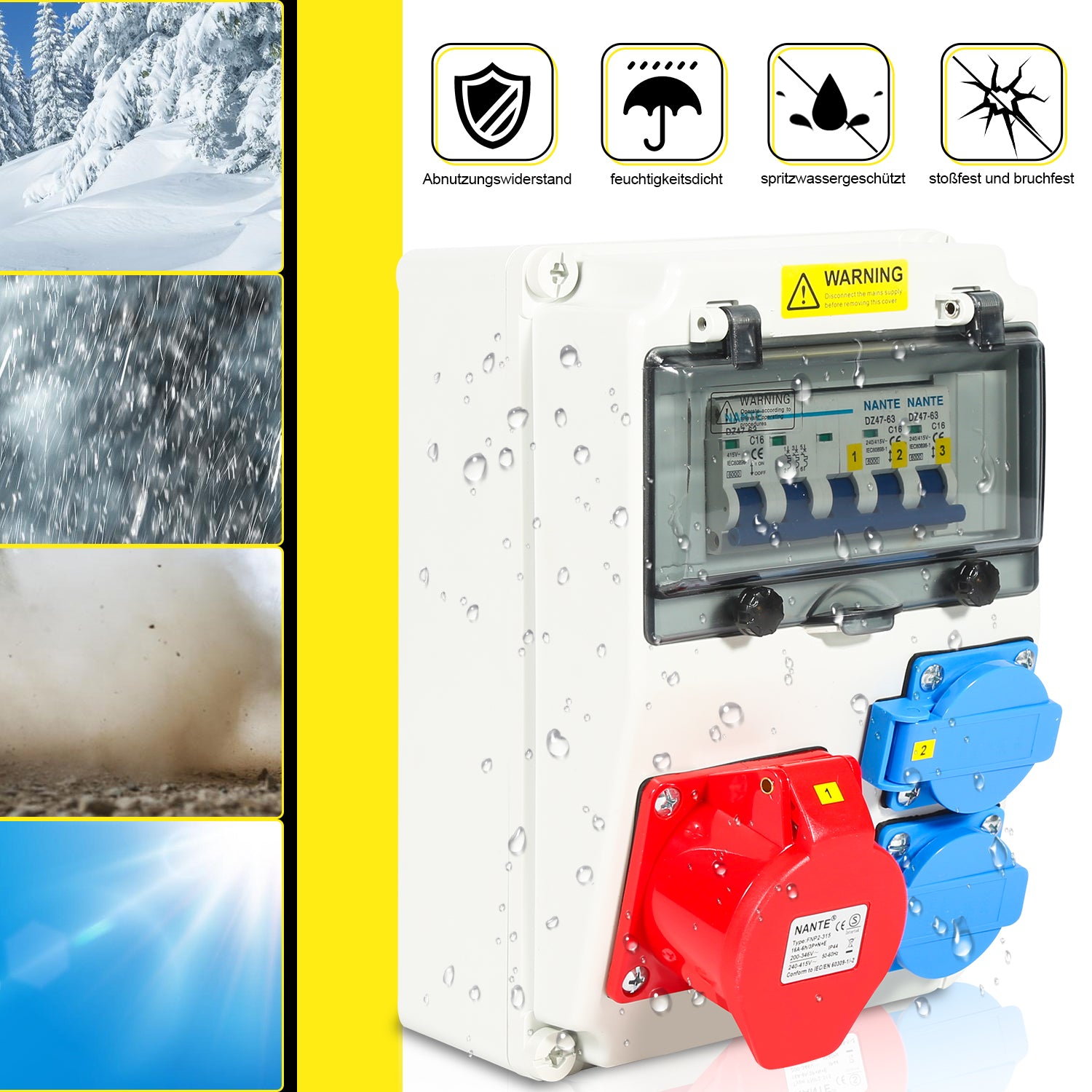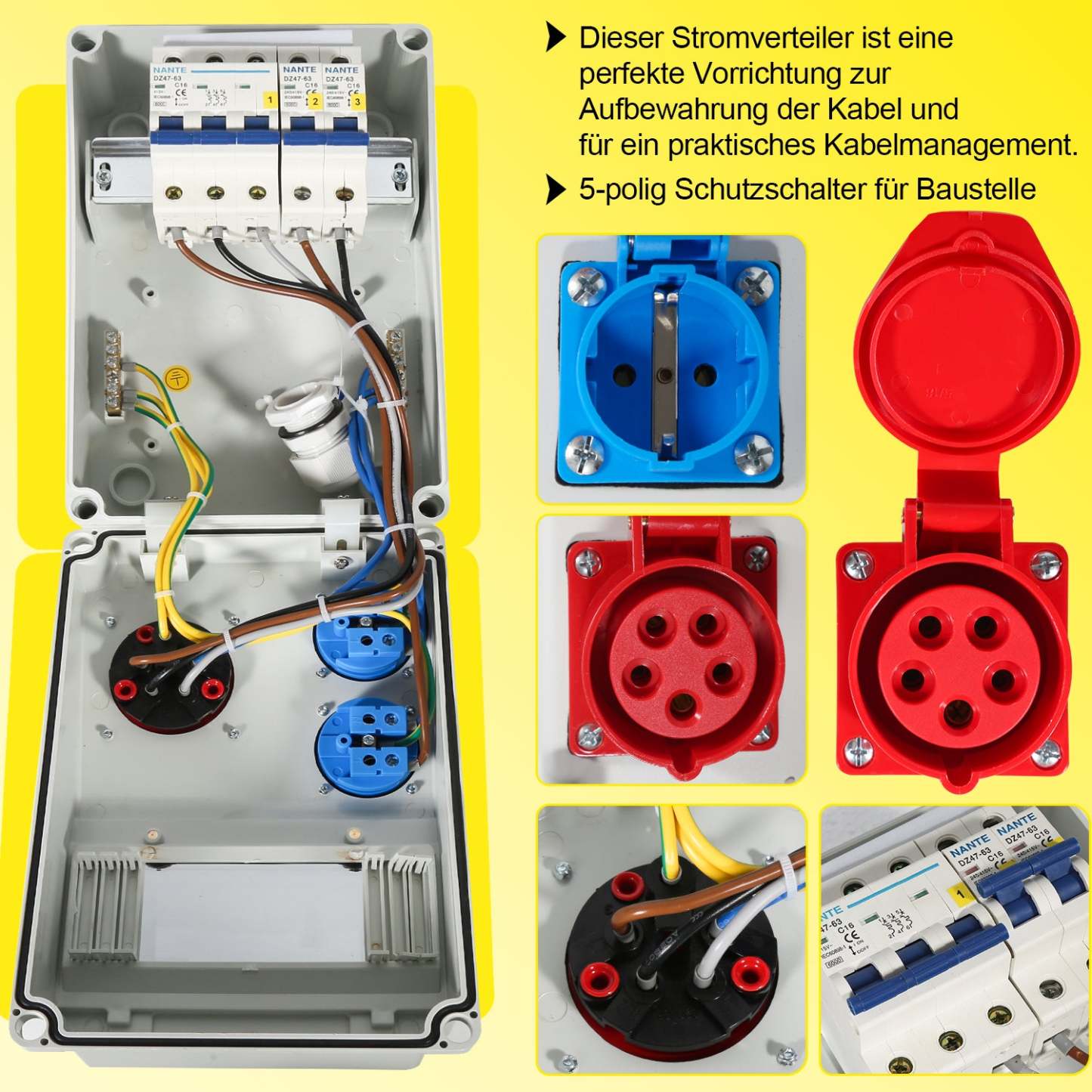 Anwendung: Dieser kompakte mobile Stromverteiler eignet sich für Baustellen, Häuser, Höfe, Industrie, Handwerk, Gärten usw. Der Stromverteiler ist mit einem stabilen Gehäuse und Griff ausgestattet. Leicht zu tragen und zu bewegen.
