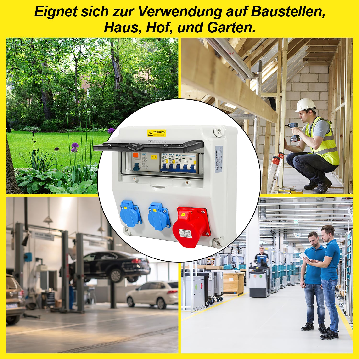Anwendung: Dieser kompakte mobile Stromverteiler eignet sich für Baustellen, Häuser, Höfe, Industrie, Handwerk, Gärten usw. Der Stromverteiler ist mit einem stabilen Gehäuse und Griff ausgestattet. Leicht zu tragen und zu bewegen.
