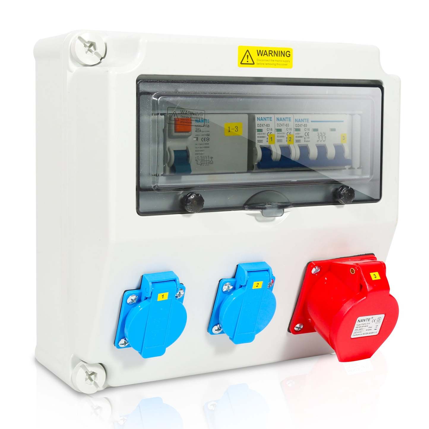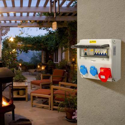 Sicherheit:Alle Abgänge sind mit integrieter Sicherung abgesichert. D.h. die Schukosteckdosen sind jeweils einzeln mit einem Sicherautomat 16A und die CEE 400V-16A bzw. CEE 400V-32A Steckdosen zusammen abgesichert. Sicherheit und sichere Verwendung.